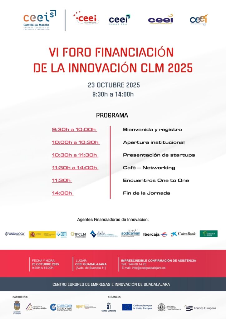 Este próximo jueves se celebra en Guadalajara la VI edición del Foro de Financiación de la Innovación CLM 2025.